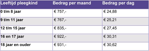 De tabel van het NIBUD geeft een handvat hoe de pleegvergoeding is opgebouwd en wat hieruit betaald dient te worden.